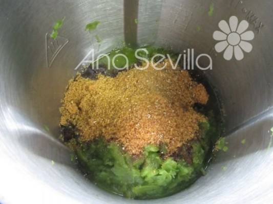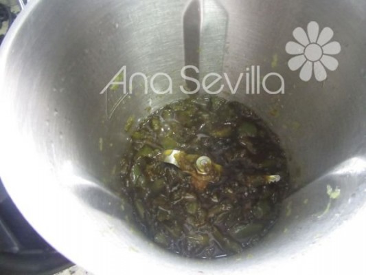 3- Azúcar moreno, zumo y pimienta, 15 min. vel.1, Tª 110º, p.c.7. . Después triturar 10 seg. vel.10.