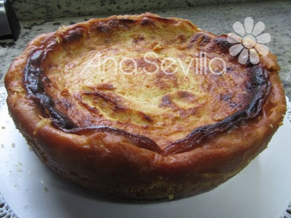 4- Hornear (200º) unos 50-60 minutos. Si véis que se dora mucho (Aunque esta tarta debe de quedar bien doradita), poner en los últimos minutos papel encima.Pinchar con aguja, si sale limpia ya está. Apagar el horno, entreabrir la puerta y dejar unos 15 minutos dentro.