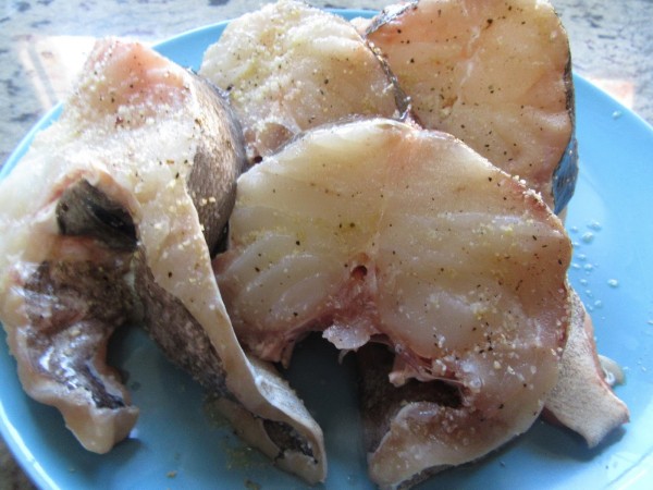1- Salpimentar el bacalao y espolvorear ajo en polvo. Reservar.