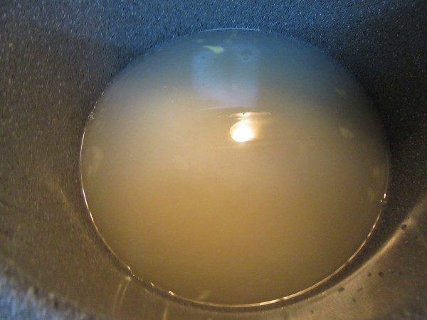 2- Pasar el arroz por un colador en el grifo con agua fría, para que suelte el almidón. Sin lavar la cubeta. Arroz, agua y sal, remover bien: Válvula cerrada, menú vapor, 3 minutos, 130º, alta presión. Reservar en una fuente.