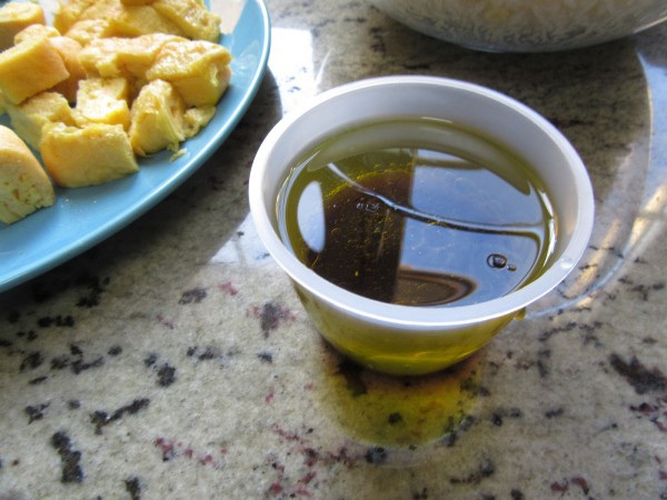 5- Hacer la vinagreta: Emulsionar el aceite, vinagre, soja y pimienta (Yo no pongo nada de sal, con la soja es suficiente) . Mezclar bien todo el conjunto.