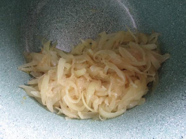 1- Calentar el aceite en menú sofreír, 20 minutos, a 200º. Mientras picar la cebolla en pluma. Cuando comience el tiempo a descontar añadir la cebolla, 1 cta. sal y azúcar moreno, sin tapa. Remover de vez en cuando. Cuando falten 5 minutos, echar el ajo en polvo.