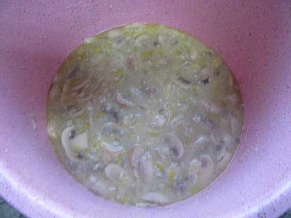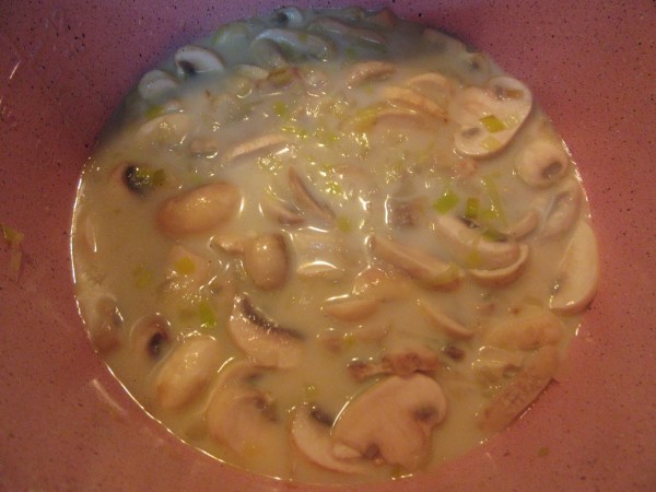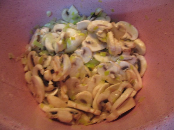 Aún no sé cómo estará, pero el el sofrito del puerro, ajo aceite y mantequilla se ha pegado en el fondo bueno en realidad se ha creado una capa que no llega a ser quemado (pero no sale ni con la espátula), espero que no sepa a quemado. Ha y de champiñones solo tenía 250gramos y con eso me he apañado.