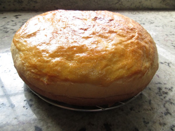 -Válvula abierta, menú horno, 130º, 30 minutos. Cancelar menú, pintar con yema con cuidado y dar color unos 5-10 minutos con el cabezal a 175º. Dejar enfriar, cortar por la mitad y rellenar con la crema bien fría. Espolvorear con azúcar glás.