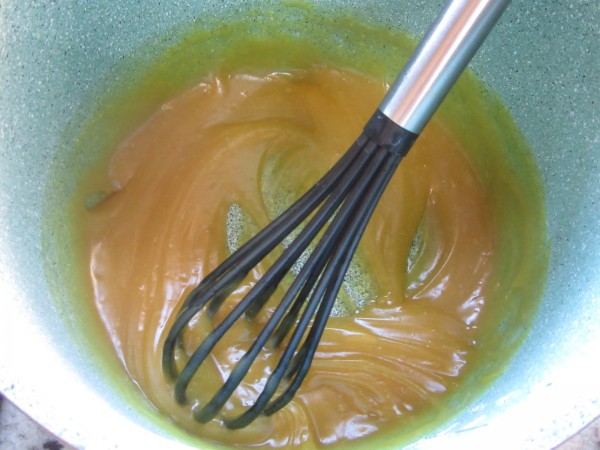 1- Todos los ingredientes al vaso de la batidora, triturar hasta que no queden grumos. Llevar a la cubeta y en menú fuego lento a 110º, removiendo con varillas hasta que espese, justo cuando empieza a descontar tiempo ya está lista. Llevar a una manga pastelera a enfriar en la nevera.