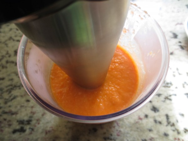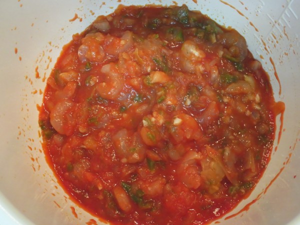 3- Agregar el azafrán o colorante y el pimentón, y triturar. Introducir de nievo en la cubeta.