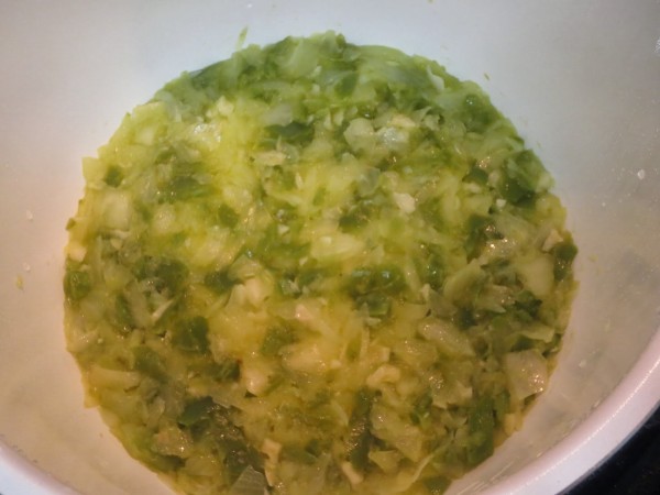 1- Calentar aceite en una cubeta en menú freír 140º/160º, añadir la cebolla, ajos y pimiento, bien picaditos y pochar bien unos minutos, hasta que esté blanda la verdura.