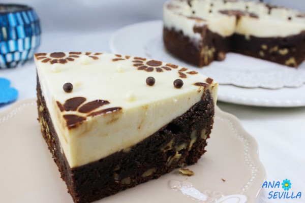 Tarta de brownie y flan. Súper sencilla, una combinación de sabores deliciosa y que hará las delicias de vuestros comensales. Además, se puede congelar.