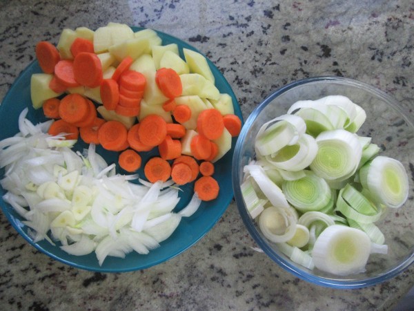 2- Añadir el puerro en rodajas, zanahoria y patatas y sofreír 5 minutos.