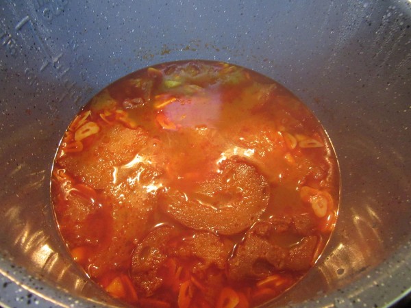 3- A continuación añadir el caldo frío, sal y cayena, válvula cerrada, 3 minutos, menú turbo, 140º, alta presión.