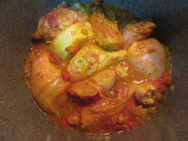 Hecha en olla GM. Cambiamos el pollo en trozos por pechuga en tacos. Sabrosísimo.