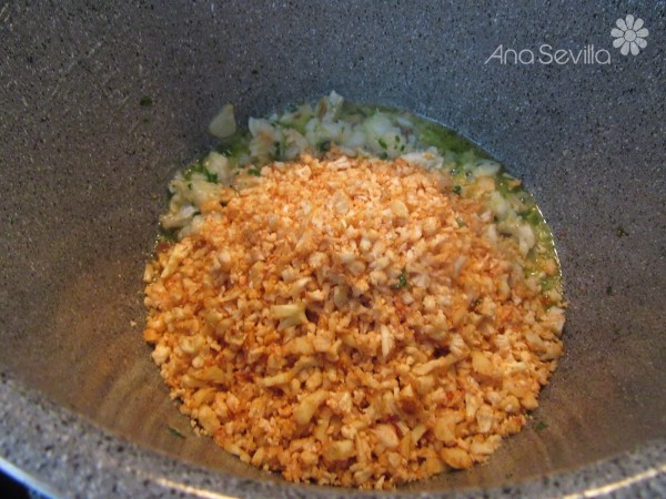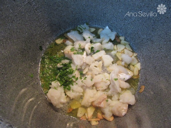 3- Agregar el bacalao y perejil, sofreír un par de minutos.