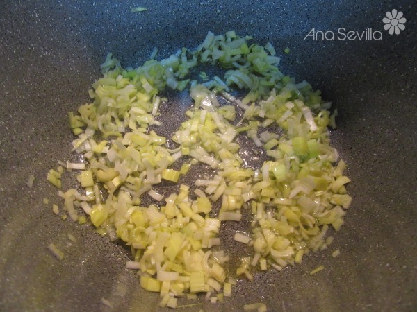 2- Pochar el puerro picadito con un poco de aceite en menú freír.