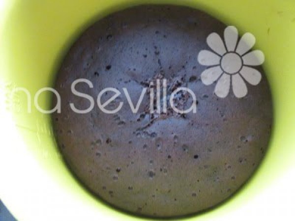 2- Hornear olla GM: Cubeta engrasada: Válvula abierta, menú horno, 80 minutos 120º. Cancelar menú y colocar 5 minutos el cabezal a 200º. Dejar enfriar y desmoldar.