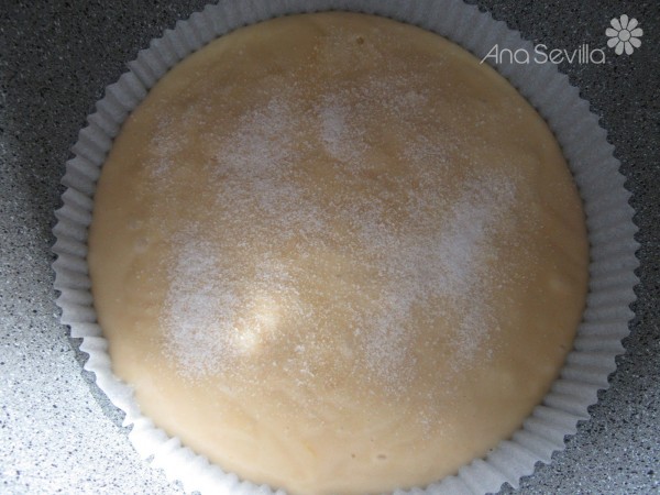 3- Espolvorear un poco de azúcar por encima. Hornear simultáneamente, olla menú Horno a 120º, 40 minutos y el cabezal de hornear 50 minutos a 130º-140º.