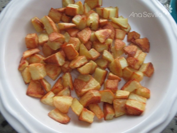 Muuuuuuy buenooooo! Lo único k no he puesto papel para k absorba la grasa de las patatas antes de echarlas al recipiente y se ha quedado muy grasiento