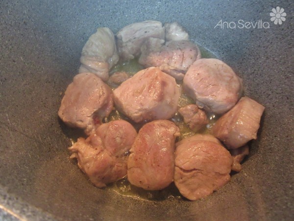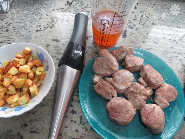 2- En ese mismo aceite y sin cancelar menú, dorar el solomillo salpimentado en medallones gruesos. Reservar y dejar enfriar el aceite que queda.