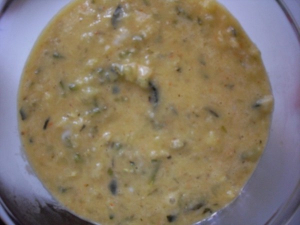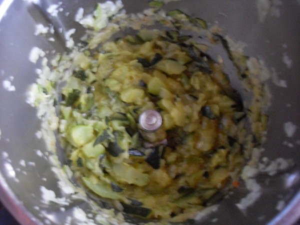2- Agregar el calabacín e trozos, picar 2-3 seg. vel.5. Según os gusten más o menos grandes los trozos.