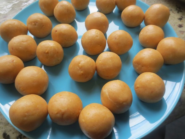 4- En caliente, recién hechos, rebozar por azúcar glas, dejar enfriar, que se adhiera una capita generosa de azúcar glas. Se conservan largo tiempo en latas.