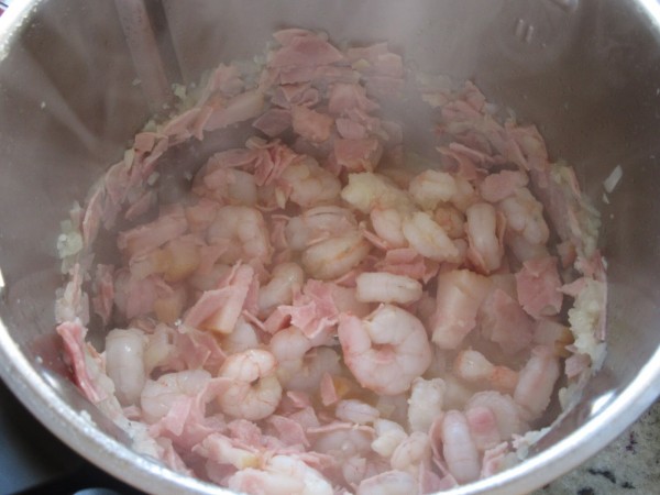 3- Agregar las gambas peladas y 2 min. Varoma, giro izda, vel. cuchara. Volcar sobre la pasta.