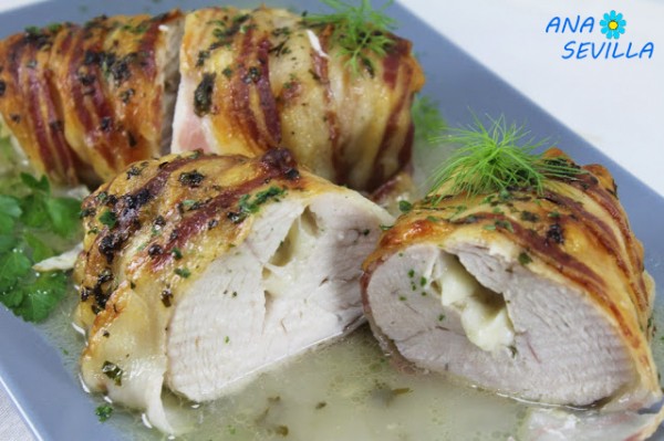 Pechugas envueltas rellenas de queso.Tiernas, jugositas y con un saborazo, rellenas de queso que se funde, umm.
