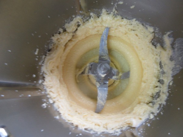 3- Batir la margarina con el azúcar 2 min. vel.4.Después ir añadiendo huevo a huevo, con la máquina en marcha en vel. 4.