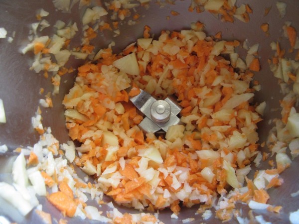 1- Picar la patata y zanahoria 2 seg. vel.5. Reservar.