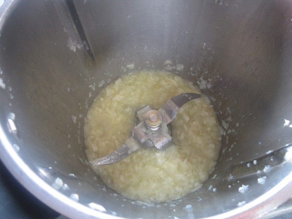 1- Picar la patata en trozos, 4 seg. vel.4. Reservar.