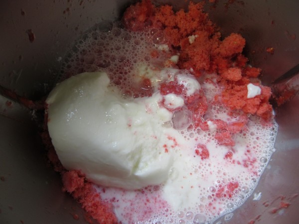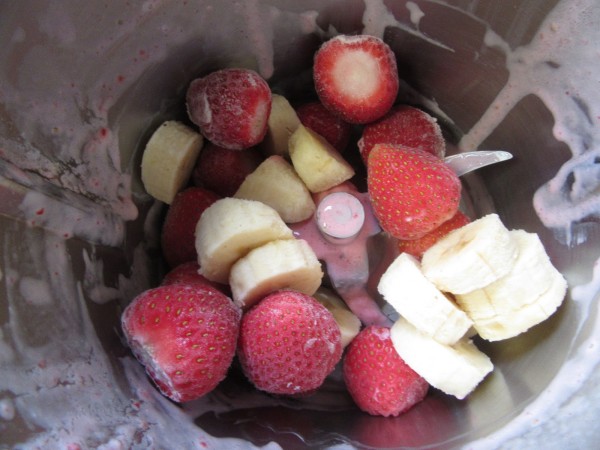 *Se puede hacer con fruta fresca, se tritura todo junto en el primer paso, lácteos y fruta, y se le añade unos 8 cubitos de hielo al final, en el paso 2.