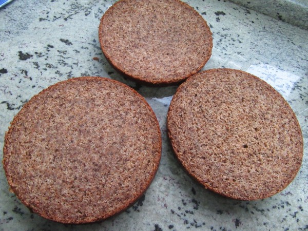 3- Cortar el bizcocho en 3 discos, rellenar a capas y cubrir con el resto del frosting. Adornar con nueces. Congela perfectamente.