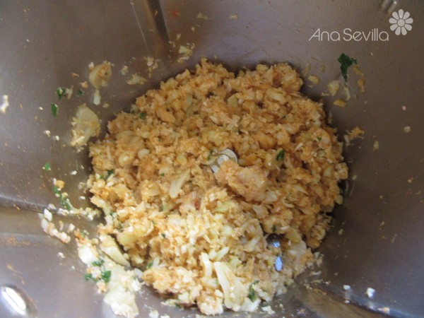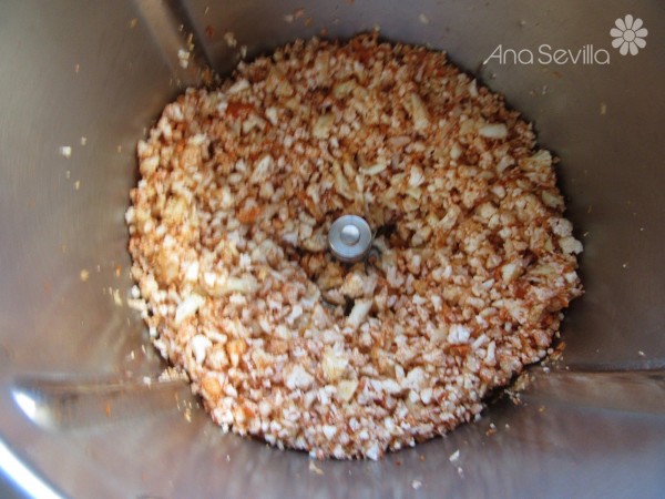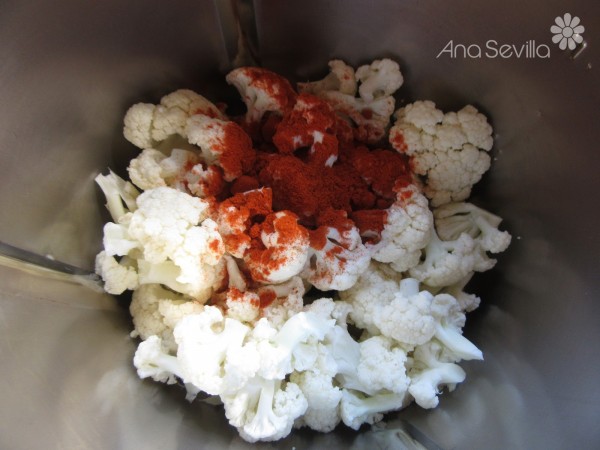 1- Picar los ramilletes de coliflor con el pimentón, 1 seg., vel.5. Reservar.