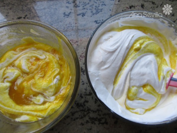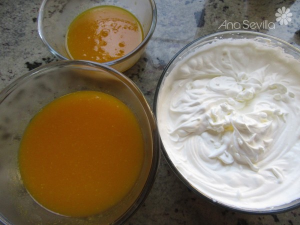 2- Montar la nata unos segundos en vel.4 sin mariposa, mezclar con el yogur con la espátula y llevar en un bol a la nevera.
