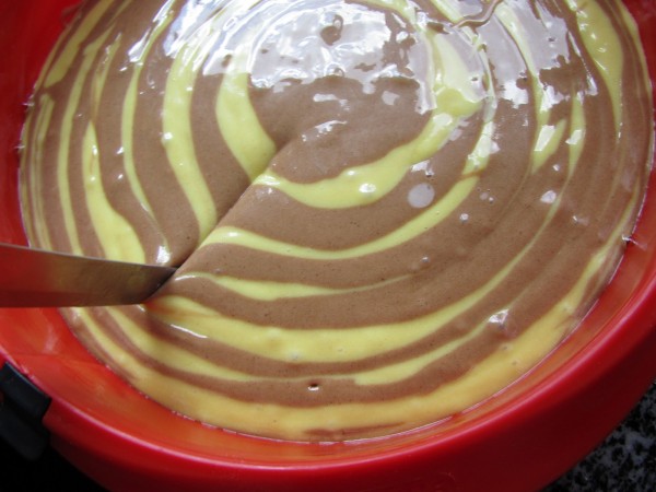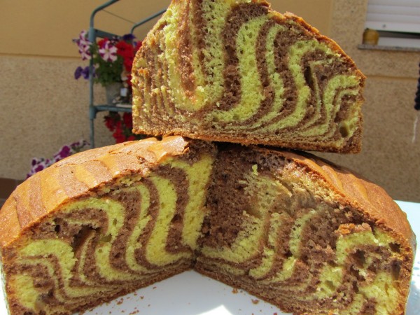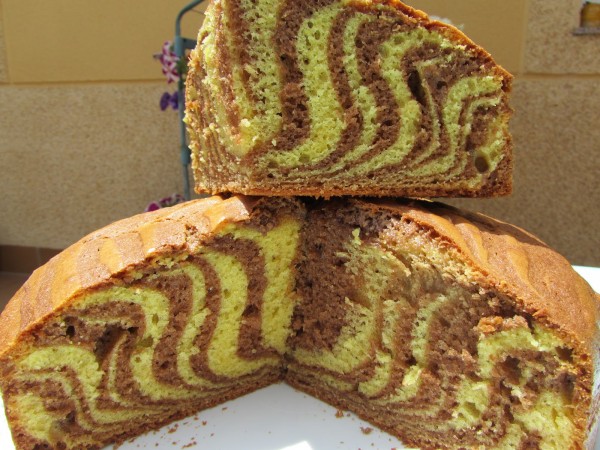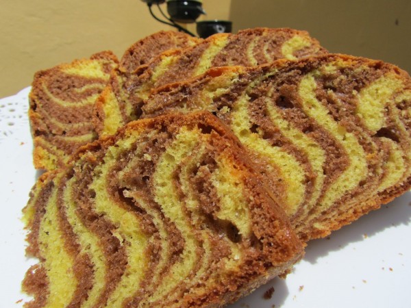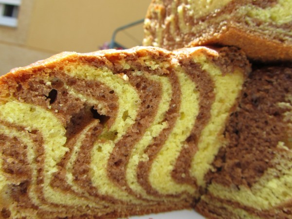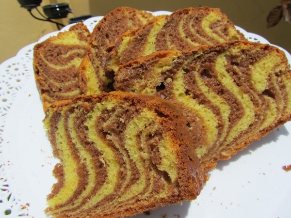 Bizcocho cebra o veteado, que al servirlo en la mesa, no deja indiferente a nadie, por su sabor y apariencia!