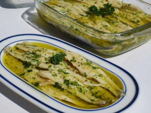 Una manera de comer pescado, que en mi casa les encanta: Boquerones en vinagre o también llamados bocartes o anchoas .