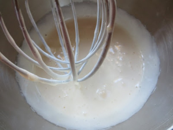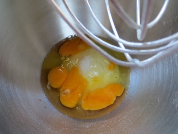 2- Batir con avarilla eléctrica los huevos, azúcar y sal, hasta que blanqueen y doblen volumen.