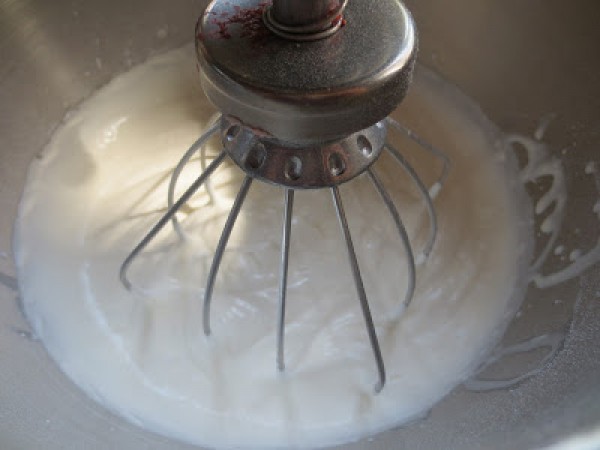 1- Montar la nata, azúcar glas y vainilla, con varillas y llevar a la nevera en una manga pastelera.
