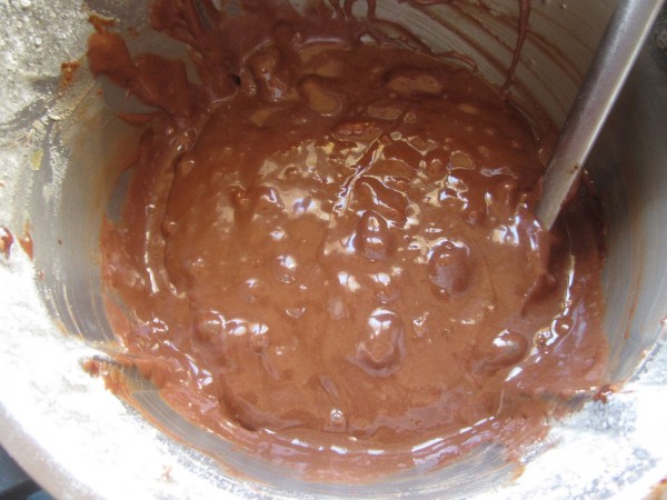 4- Añadir el chocolate fundido y mezclar bien.