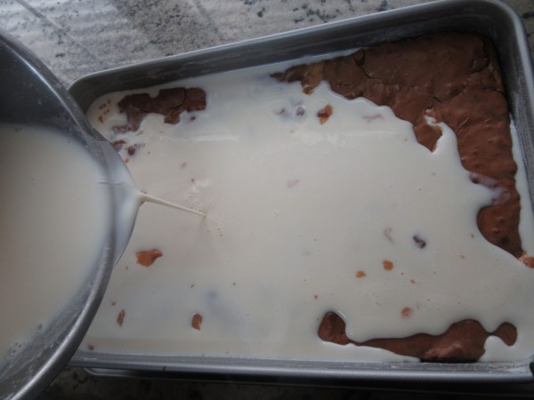 1- Todos los ingredientes en un hervidor, triturar bien con el turmix, que no queden grumos y llevar al fuego hasta que casi comience a hervir. Volcar sobre el brownie y llevar a la nevera unas horas. Servir espolvoreado de canela o chocolate en polvo.