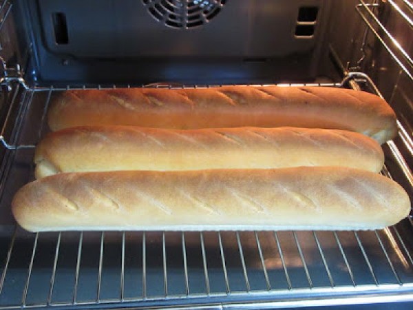 4- Precalentar el horno a 270º. (Al máximo), con un cacharrito de agua en el fondo. Introducir los panes, bajar el horno a 220º, y semi-hornear 8-10 minutos. Dejar templar sobre rejilla. Han de quedar blanquitas.