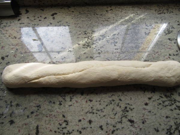 Una vez levada la masa, desgasificar y formar un rulo largo