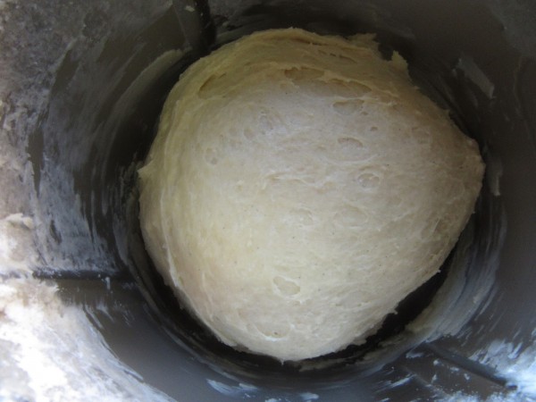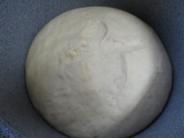 1- Templar la leche y azúcar, disolver la levadura. Añadir la harina y formar una bola amasando.