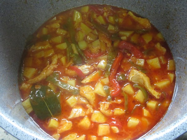 Quedan las papas duras ;las dejé a fuego lento por lo menos 10 min más en el caldero pero se me pegó algo en el fondo.De resto muy rico