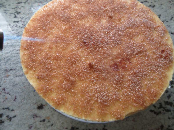 Desmoldar , espolvorear con azúcar moreno y quemar con el soplete. Ésto última es opcional.