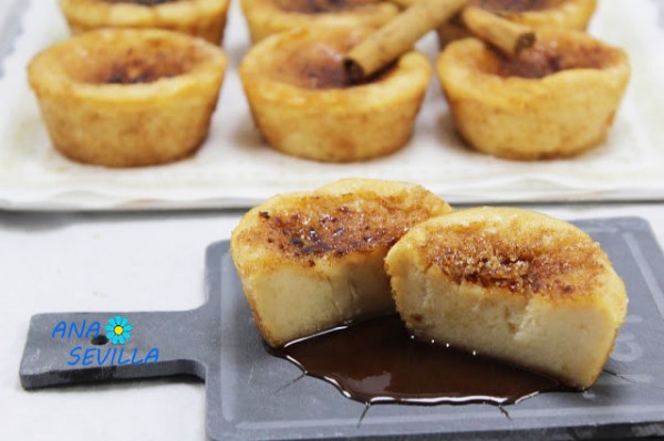 5- Dejar templar, desmoldar y rebozar con azúcar mezclada con canela. Quemar un poco con el soplete el día de servirlos.(Opcional).