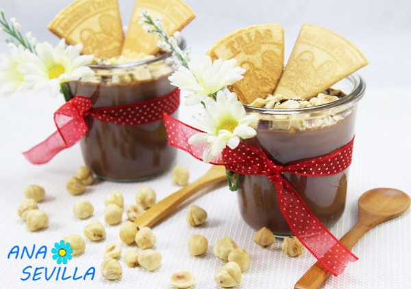 Natillas de chocolate y avellanas Receta que dedico a un miembro de mi grupo, Juaneando con Ana Sevilla: Irene Alves Domínguez. A su hijo le chiflan. Y saben a Nutella sin llevar ese ingrediente.