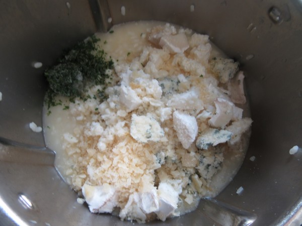 Ana SevillaQueso azul, roquefor, el que quieras, haz la mezcla de quesos que te gusten más.