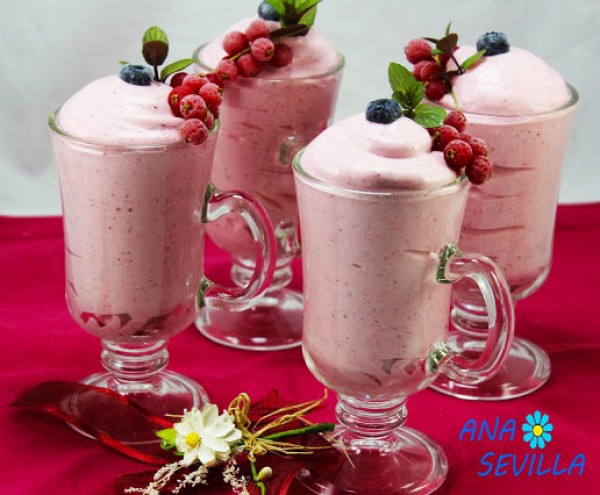 Espuma de fresas, frutas del bosque, melocotón, plátano.... La fruta que más os guste.