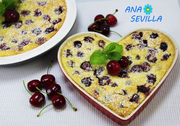 Clafoutis de cerezas. Un delicioso pastel francés con una fruta que en España consumimos habitualmente en temporada.