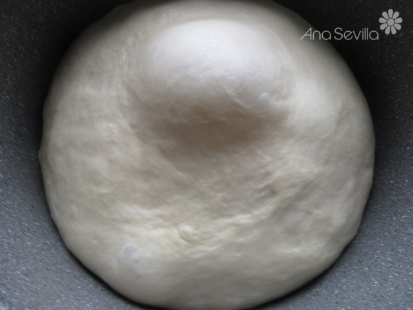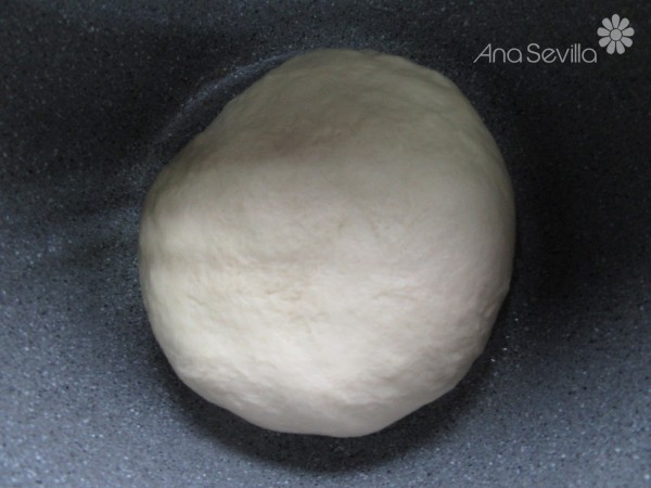 1- Disolver la levadura en el agua templada. Añadir el aceite, leche, harina, azúcar y sal y amasar unos minutos.