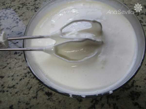 . 2- Con varillas eléctricas. montar en un bol amplio, la leche evaporada, (Podéis congelarla en cubiteras), y leche condensada, hasta que doble volumen. Ha de quedar montada, si no está casi congelada la leche ideal, no montará.